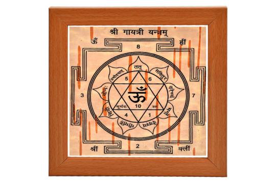 Shree Gayatri Yantram on Bhojpatra-With Frame
